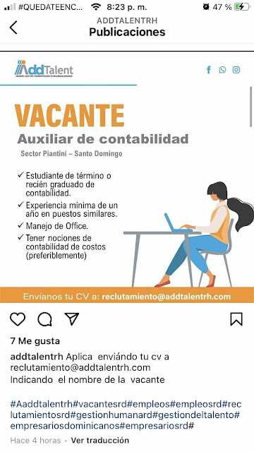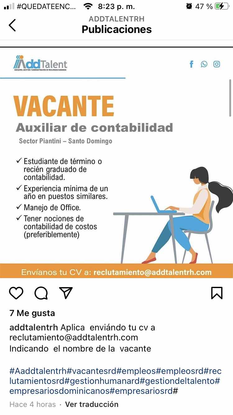 Auxiliar de Contabilidad, Sector Piantini, Santo Domingo.